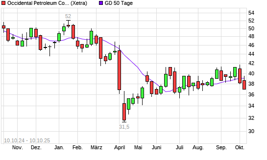 Mit dem Anstieg auf 39,07 EUR hat die Occidental Petroleum-Aktie am 09.10.2025 die 50-Tage-Linie nach oben gekreuzt.