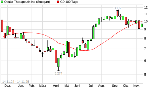 Mit dem Rücksetzer auf 9,86 EUR hat die Ocular Therapeutix-Aktie am 13.11.2025 die 100-Tage-Linie nach unten gekreuzt.