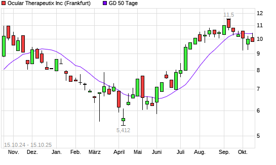 Mit dem Rücksetzer auf 9,81 EUR hat die Ocular Therapeutix-Aktie am 14.10.2025 die 50-Tage-Linie nach unten gekreuzt.