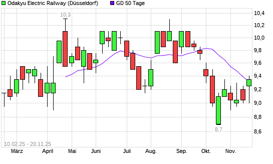 Mit dem Anstieg auf 9,40 EUR hat die Odakyu Electric Railway-Aktie am 19.11.2025 die 50-Tage-Linie nach oben gekreuzt.