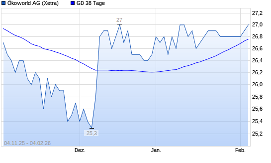 Mit dem Anstieg auf 26,60 EUR hat die Ökoworld-Aktie am 03.02.2026 die 38-Tage-Linie nach oben gekreuzt.