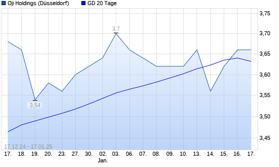 Mit dem Anstieg auf 3,68 EUR hat die Oji Holdings-Aktie am 16.01.2025 die 20-Tage-Linie nach oben gekreuzt.