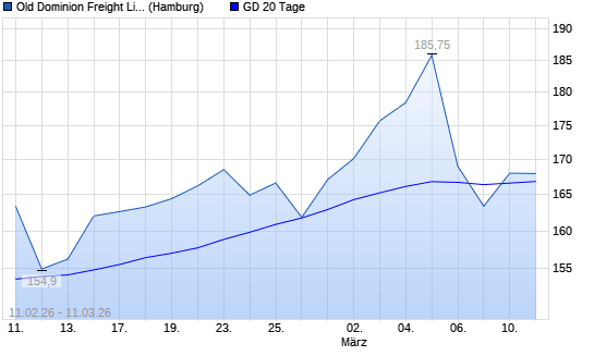Mit dem Rücksetzer auf 166,05 EUR hat die Old Dominion Freight Line-Aktie am 10.03.2026 die 20-Tage-Linie nach unten gekreuzt.