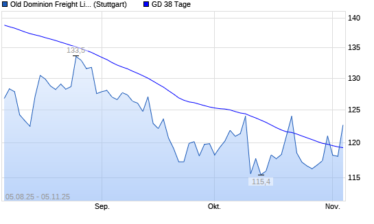 Mit dem Rücksetzer auf 117,40 EUR hat die Old Dominion Freight Line-Aktie am 04.11.2025 die 38-Tage-Linie nach unten gekreuzt.
