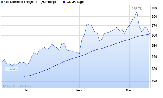 Mit dem Rücksetzer auf 159,20 EUR hat die Old Dominion Freight Line-Aktie am 11.03.2026 die 38-Tage-Linie nach unten gekreuzt.
