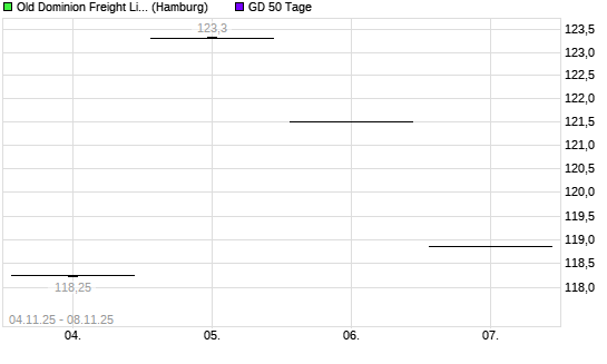 Mit dem Rücksetzer auf 118,80 EUR hat die Old Dominion Freight Line-Aktie am 07.11.2025 die 50-Tage-Linie nach unten gekreuzt.