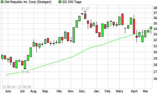 Mit dem Anstieg auf 33,69 EUR hat die Old Republic International-Aktie am 16.05.2025 die 200-Tage-Linie nach oben gekreuzt.