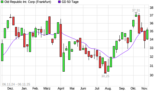 Mit dem Anstieg auf 35,45 EUR hat die Old Republic International-Aktie am 05.11.2025 die 50-Tage-Linie nach oben gekreuzt.