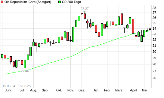 Mit dem Rücksetzer auf 33,37 EUR hat die Old Republic International-Aktie am 14.05.2025 die 200-Tage-Linie nach unten gekreuzt.