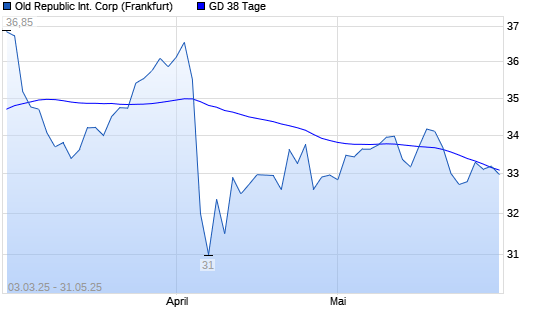 Mit dem Rücksetzer auf 32,98 EUR hat die Old Republic International-Aktie am 30.05.2025 die 38-Tage-Linie nach unten gekreuzt.