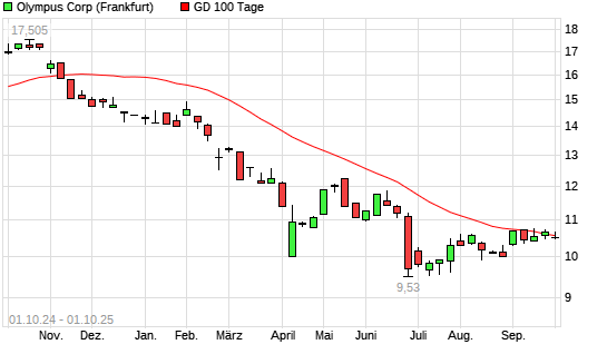 Mit dem Anstieg auf 10,68 EUR hat die Olympus-Aktie am 30.09.2025 die 100-Tage-Linie nach oben gekreuzt.