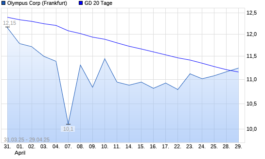 Mit dem Anstieg auf 11,16 EUR hat die Olympus-Aktie am 28.04.2025 die 20-Tage-Linie nach oben gekreuzt.