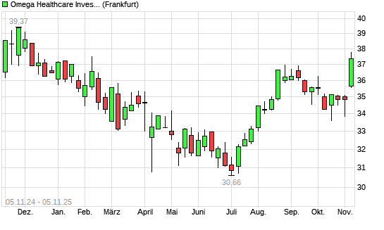 Mit dem Anstieg auf 37,37 EUR hat die Omega Healthcare Investors-Aktie (ISIN US6819361006) am 04.11.2025 ein neues 6-Monats-Hoch erreicht und damit den Kurs vom 04.09.2025 eingestellt.