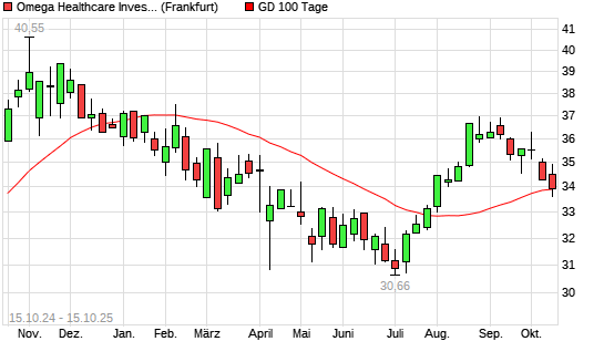 Mit dem Rücksetzer auf 33,63 EUR hat die Omega Healthcare Investors-Aktie am 14.10.2025 die 100-Tage-Linie nach unten gekreuzt.