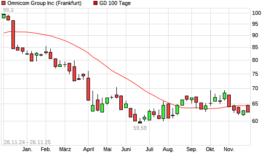 Mit dem Rücksetzer auf 63,62 EUR hat die Omnicom Group-Aktie am 25.11.2025 die 100-Tage-Linie nach unten gekreuzt.