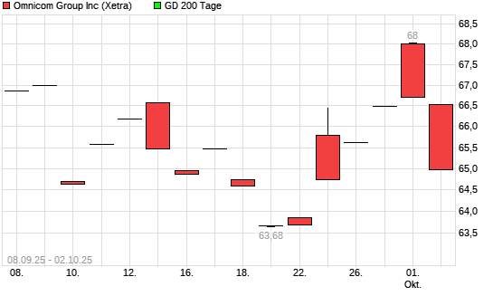 Mit dem Rücksetzer auf 67,60 EUR hat die Omnicom Group-Aktie am 01.10.2025 die 200-Tage-Linie nach unten gekreuzt.