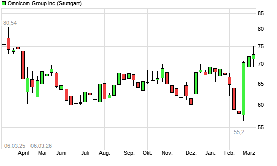 Mit dem Anstieg auf 74,60 EUR hat die Omnicom Group-Aktie (ISIN US6819191064) am 05.03.2026 ein neues 6-Monats-Hoch erreicht und damit den Kurs vom 04.03.2026 eingestellt.Die ...weiterlesen