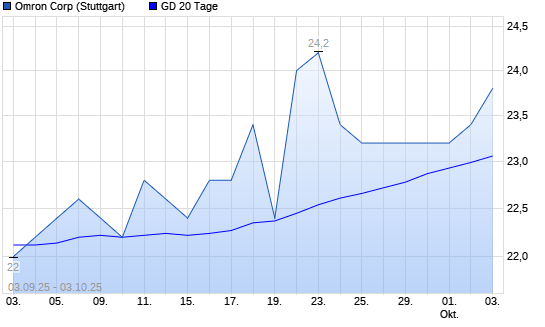 Mit dem Anstieg auf 23,20 EUR hat die Omron-Aktie am 02.10.2025 die 20-Tage-Linie nach oben gekreuzt.