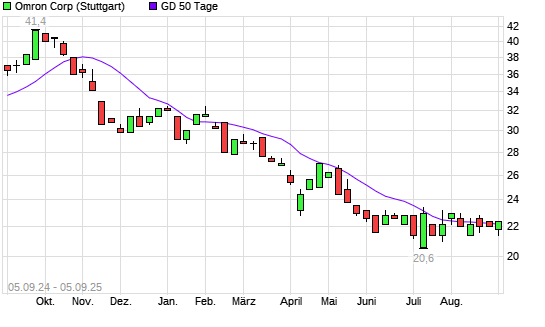 Mit dem Anstieg auf 22,20 EUR hat die Omron-Aktie am 04.09.2025 die 50-Tage-Linie nach oben gekreuzt.