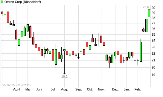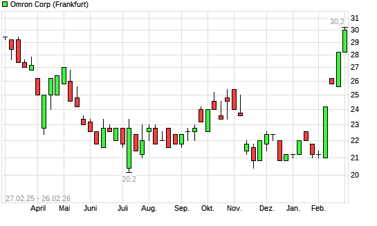 Mit dem Anstieg auf 30,00 EUR hat die Omron-Aktie (ISIN JP3197800000) am 25.02.2026 ein neues 12-Monats-Hoch erreicht und damit den Kurs vom 27.02.2025 eingestellt.Die Omron-Aktie ...weiterlesen