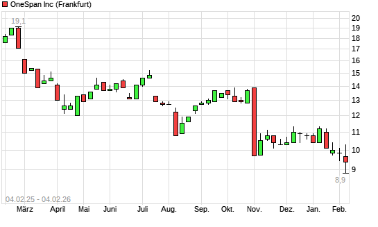 Mit dem Rücksetzer auf 9,45 EUR hat die OneSpan-Aktie (ISIN US68287N1000) am 03.02.2026 ein neues 12-Monats-Tief erreicht und damit den Kurs vom 29.01.2026 eingestellt.