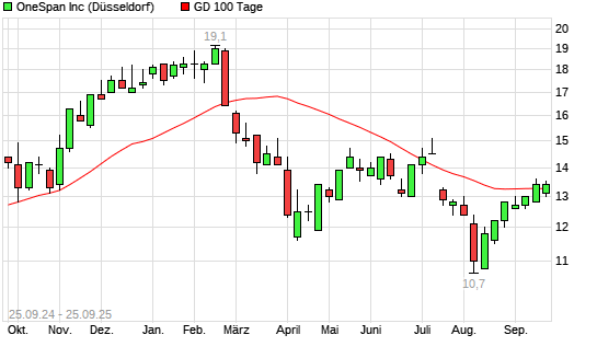 Mit dem Anstieg auf 13,30 EUR hat die OneSpan-Aktie am 24.09.2025 die 100-Tage-Linie nach oben gekreuzt.