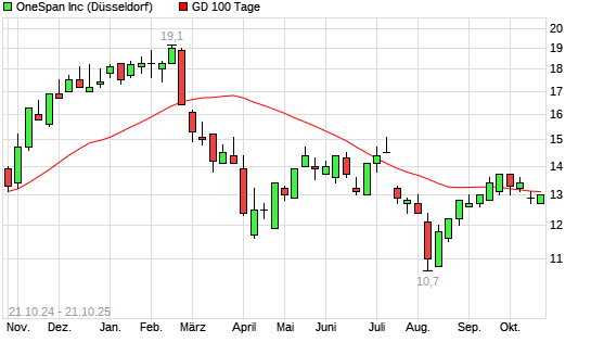 Mit dem Anstieg auf 13,20 EUR hat die OneSpan-Aktie am 20.10.2025 die 100-Tage-Linie nach oben gekreuzt.