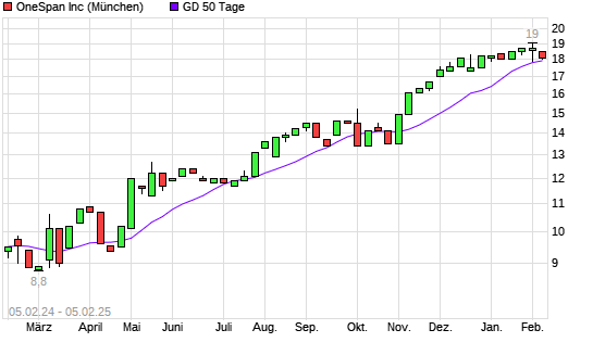 Mit dem Rücksetzer auf 17,60 EUR hat die OneSpan-Aktie am 04.02.2025 die 50-Tage-Linie nach unten gekreuzt.