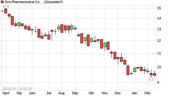 Mit dem Rücksetzer auf 9,45 EUR hat die Ono Pharmaceut.-Aktie (ISIN JP3197600004) am 13.02.2025 ein neues 10-Jahres-Tief erreicht und damit den Kurs vom 12.02.2025 eingestellt.