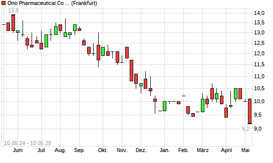 Mit dem Rücksetzer auf 9,20 EUR hat die Ono Pharmaceut.-Aktie (ISIN JP3197600004) am 09.05.2025 ein neues 10-Jahres-Tief erreicht und damit den Kurs vom 04.04.2025 eingestellt.
