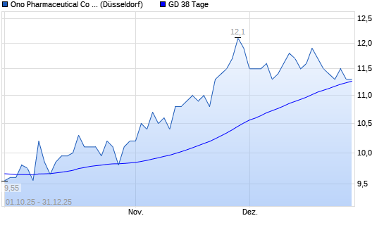 Mit dem Anstieg auf 11,50 EUR hat die Ono Pharmaceut.-Aktie am 30.12.2025 die 38-Tage-Linie nach oben gekreuzt.