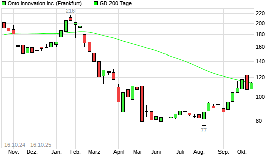 Mit dem Anstieg auf 115,00 EUR hat die Onto Innovation-Aktie am 15.10.2025 die 200-Tage-Linie nach oben gekreuzt.