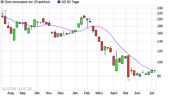 Mit dem Rücksetzer auf 86,50 EUR hat die Onto Innovation-Aktie am 10.07.2025 die 50-Tage-Linie nach unten gekreuzt.