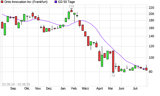 Mit dem Rücksetzer auf 82,00 EUR hat die Onto Innovation-Aktie am 01.08.2025 die 50-Tage-Linie nach unten gekreuzt.