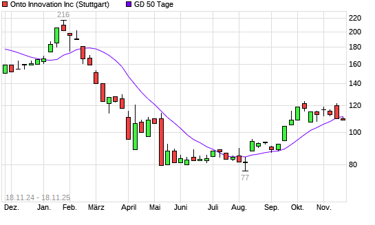 Mit dem Rücksetzer auf 110,00 EUR hat die Onto Innovation-Aktie am 17.11.2025 die 50-Tage-Linie nach unten gekreuzt.