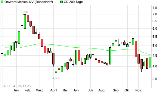 Mit dem Rücksetzer auf 4,30 EUR hat die Onward Medical-Aktie am 25.11.2025 die 200-Tage-Linie nach unten gekreuzt.