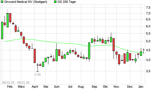 Mit dem Rücksetzer auf 4,35 EUR hat die Onward Medical-Aktie am 07.01.2026 die 200-Tage-Linie nach unten gekreuzt.