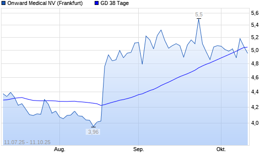 Mit dem Rücksetzer auf 5,02 EUR hat die Onward Medical-Aktie am 10.10.2025 die 38-Tage-Linie nach unten gekreuzt.