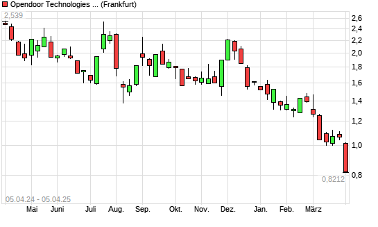 Mit dem Rücksetzer auf 0,82 EUR hat die Opendoor Technologies-Aktie (ISIN US6837121036) am 04.04.2025 ein neues All-Time-Low erreicht und damit den Kurs vom 27.12.2022 eingestellt.