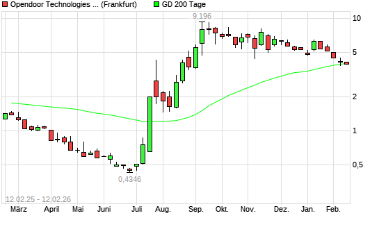 Mit dem Anstieg auf 4,09 EUR hat die Opendoor Technologies-Aktie am 11.02.2026 die 200-Tage-Linie nach oben gekreuzt.