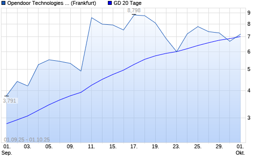 Mit dem Rücksetzer auf 6,69 EUR hat die Opendoor Technologies-Aktie am 30.09.2025 die 20-Tage-Linie nach unten gekreuzt.
