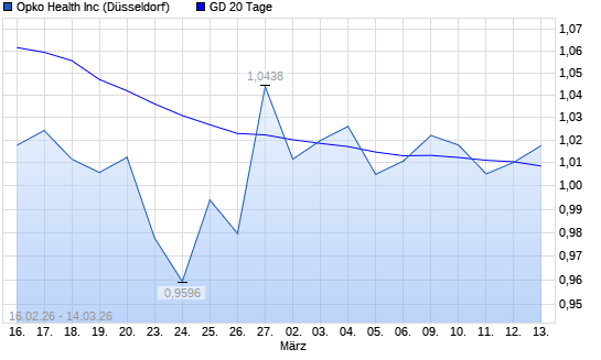 Mit dem Anstieg auf 0,98 EUR hat die Opko Health-Aktie am 13.03.2026 die 20-Tage-Linie nach oben gekreuzt.Die Opko Health-Aktie befindet sich seit dem 21.10.2025 im ...weiterlesen
