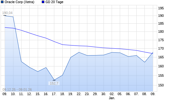 Mit dem Rücksetzer auf 163,00 EUR hat die Oracle-Aktie am 08.01.2026 die 20-Tage-Linie nach unten gekreuzt.