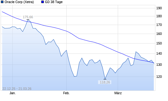 Mit dem Rücksetzer auf 128,48 EUR hat die Oracle-Aktie am 20.03.2026 die 38-Tage-Linie nach unten gekreuzt.