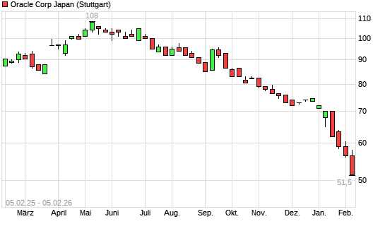 Mit dem Rücksetzer auf 51,50 EUR hat die Oracle Japan-Aktie (ISIN JP3689500001) am 04.02.2026 ein neues 3-Jahres-Tief erreicht und damit den Kurs vom 03.02.2026 eingestellt.