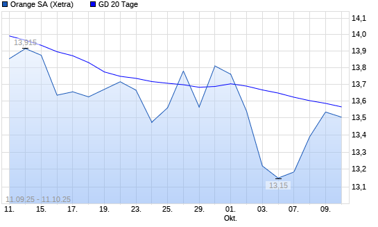 Mit dem Anstieg auf 13,59 EUR hat die Orange-Aktie am 10.10.2025 die 20-Tage-Linie nach oben gekreuzt.