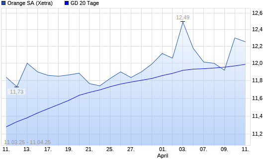 Mit dem Rücksetzer auf 11,87 EUR hat die Orange-Aktie am 10.04.2025 die 20-Tage-Linie nach unten gekreuzt.