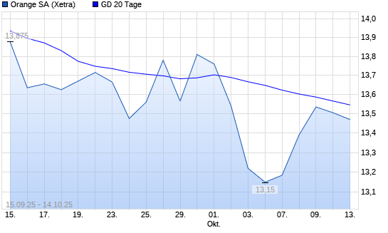 Mit dem Rücksetzer auf 13,51 EUR hat die Orange-Aktie am 13.10.2025 die 20-Tage-Linie nach unten gekreuzt.