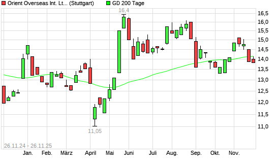 Mit dem Rücksetzer auf 13,85 EUR hat die Orient Overseas-Aktie am 25.11.2025 die 200-Tage-Linie nach unten gekreuzt.