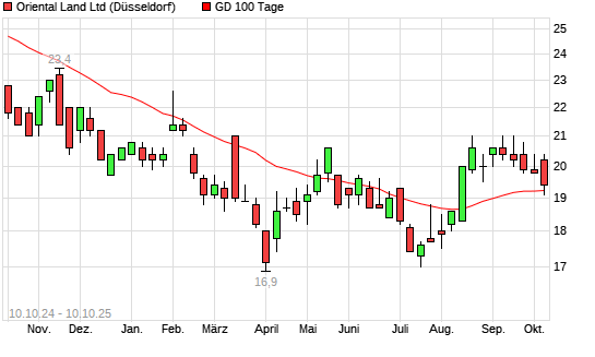 Mit dem Anstieg auf 19,50 EUR hat die Oriental Land-Aktie am 09.10.2025 die 100-Tage-Linie nach oben gekreuzt.